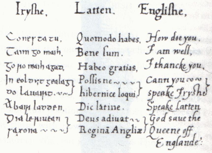 Elizabeth I's primer on Irish Sir Christopher Nugent/ Quelle: Wikimedia Commons/ Lizenz: public domain (Elizabeth I's primer on Irish Sir Christopher Nugent/ Quelle: Wikimedia Commons/ Lizenz: public domain)